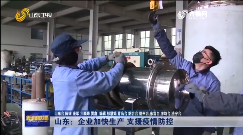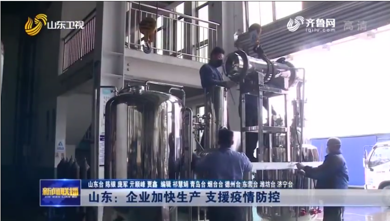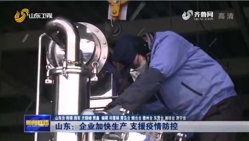 中共中央宣传部学习强国学习平台和山东卫视新闻联播报道我公司为疫区赶制急需药物生产设备